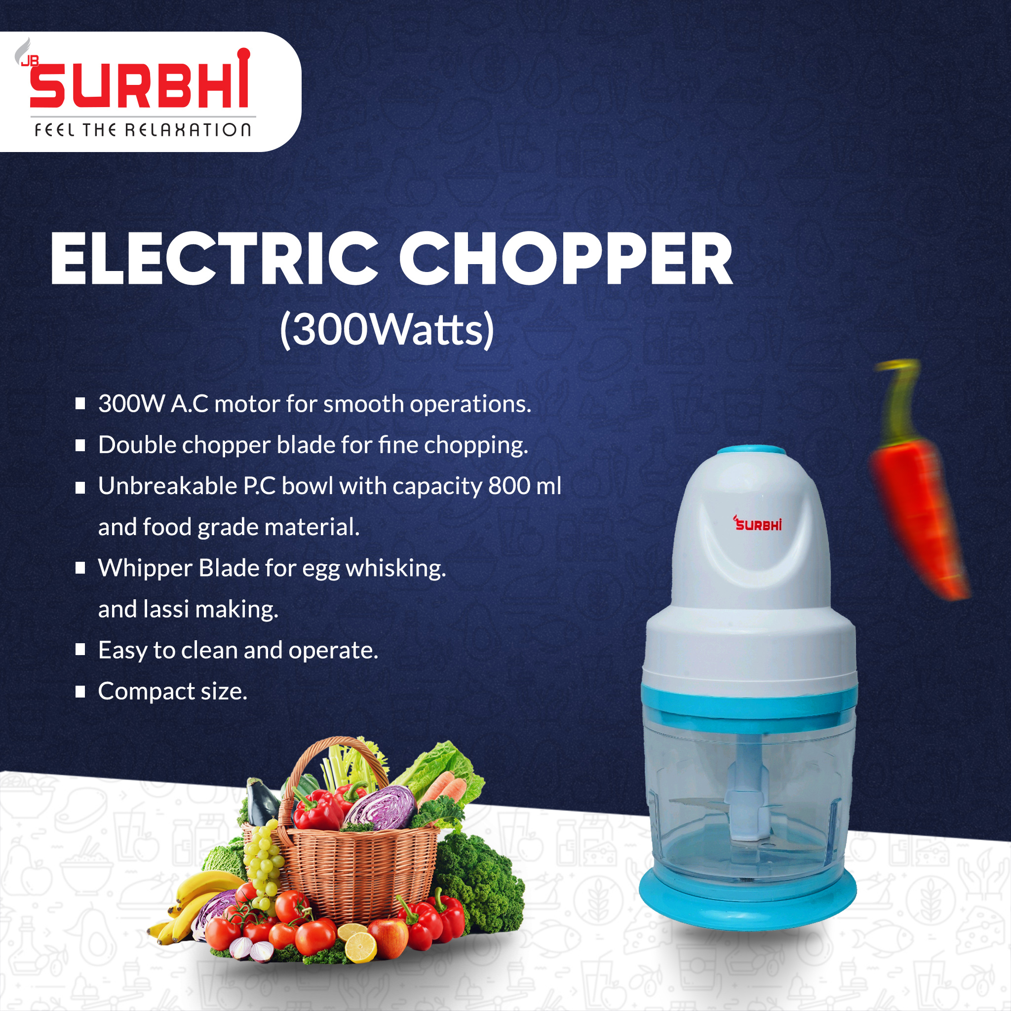 The Surbhi Push-On Chop Electric Chopper is easy to operate, with a simple push-button control that allows you to chop your ingredients in seconds. The chopper also features a safety lock system that ensures safe and easy operation.