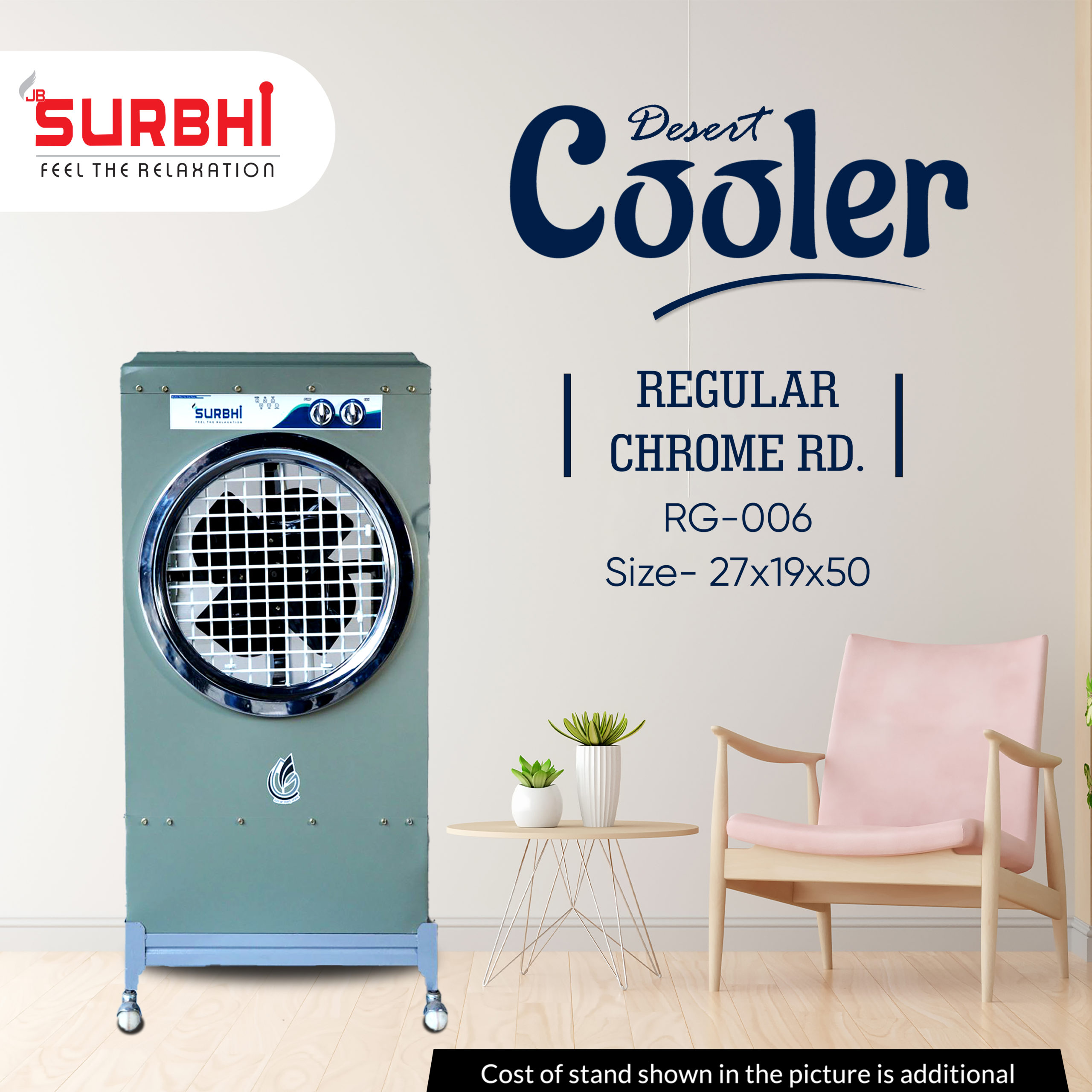 Experience powerful and efficient cooling with the Surbhi Reg Cooler with Round Chrome Frame and 18 inch Exhaust Fan, adding both style and functionality to your home.