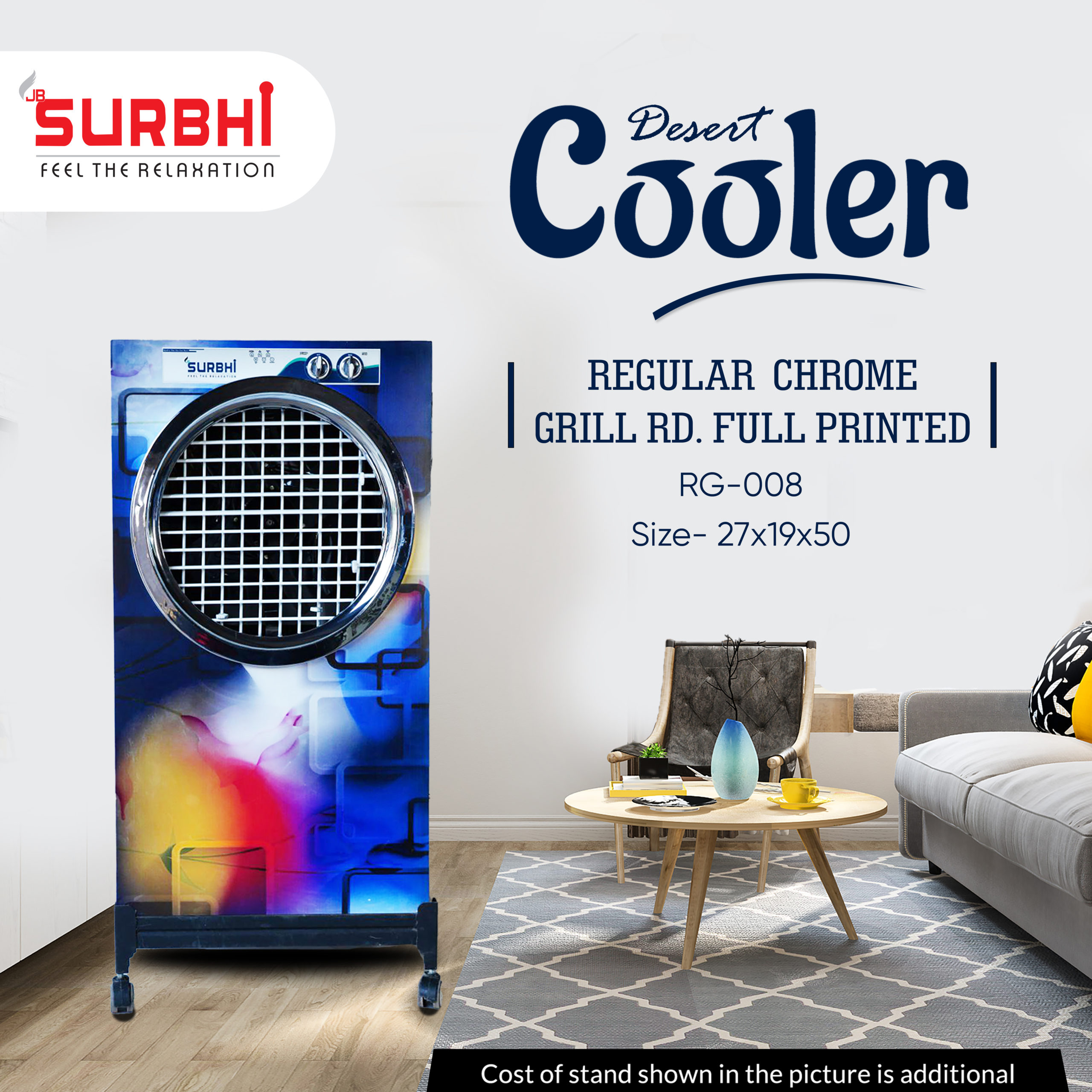 Stay cool in style this summer with the Surbhi Reg Cooler with Round Chrome Frame, Fully Printed Body, and 18 inch Exhaust Fan. The cooler’s round chrome frame not only enhances its aesthetic appeal but also ensures durability and longevity. The fully printed body of the cooler features a stylish and attractive design that is sure to complement any room in your home. With its powerful 18-inch exhaust fan, the cooler can quickly and efficiently cool down even the hottest of rooms. The user-friendly controls and durable construction make it easy to operate and maintain, making it an ideal addition to your home. If you’re looking for a stylish and efficient cooling solution, the Surbhi Reg Cooler with Round Chrome Frame, Fully Printed Body, and 18 inch Exhaust Fan is the perfect choice.